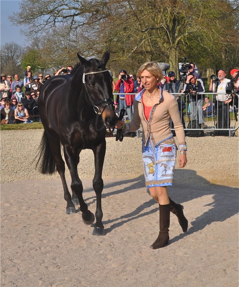 Mary King received a warm welcome as one of Britain’s most popular riders who played a key role in winning the team silver medal at the London 2012 Olympic Games. Her pastel outfit certainly turned heads; the blue and white striped jacket complemented by pale blue jeans.